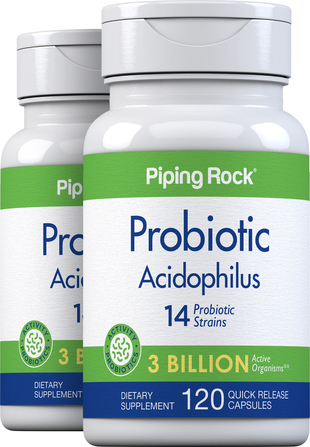 **Piping Rock® Probiotic Acidophilus contains over 3 billion active organisms per capsule (including the naturally occurring metabolic product produced by Lactobacilli) at the time of manufacture.