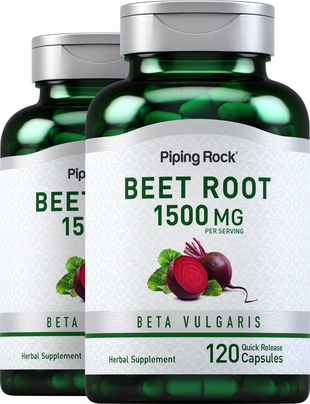 Now, there is a way to take your favorite superfood on the go. Piping Rock Beet Root is a high quality source of this red superfood you won't want to be without! Our Gluten Free and non-GMO formula is made without artificial color, artificial sweeteners, or artificial flavor — just beets. Quick-release capsules deliver 1,500 mg of beet root per serving, a powerful supply for a healthy routine.