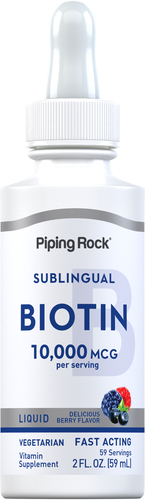 Piping Rock has crafted a professional Biotin formula that prioritizes purity and potency. That’s why ours is dosed at 10,000 mcg for maximum support. It goes through several checks during manufacturing to ensure strong bioavailability and purity. Not to mention, it’s simply irresistible! A single daily dropperful delivers a blast of berry flavor that’s sweet and satisfying. It’s the perfect formula for men and women of all ages!