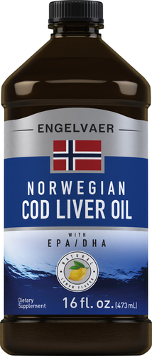 Engelvaer Norwegian Cod Liver Oil (Natual Lemon Flavor), 16 fl oz (473 mL) Bottle