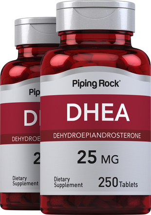 Naturally produced by the pineal gland, DHEA (Dehydroepiandrosterone) is an important hormone that can decline with age, making it too difficult to produce on your own. A supplement can help aid by providing an additional supply of this hormone for your nutrition plan. Piping Rock DHEA is a high-powered nutritional supplement, delivering 25 mg of DHEA in vegetarian tablets for powerful support. We take the time to test our DHEA for purity and potency, ensuring maximum quality for you and your wellness routine. Our formula is Gluten Free and non-GMO with no artificial colors or flavors, or preservatives making it a top choice for men and women around the world!