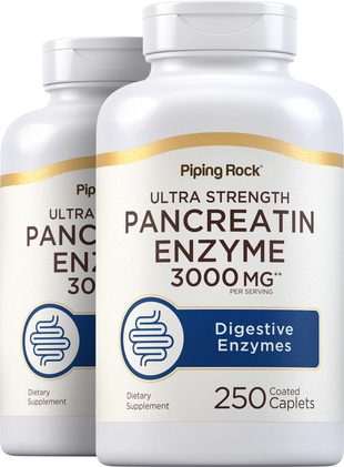 Pancreatin is a mixture of enzymes produced by the pancreas, composed of amylase, lipase, and protease. These enzymes are substances needed by the body to help the body break down and digest food.** Pancreatin enzymes can provide digestive support and promotes dietary support and good nutrition.** Piping Rock Ultra Strength Pancreatine Enzyme features 3000 mg plus a wide range of other enzymes in coated caplets, making it an excellent choice for your wellness routine.