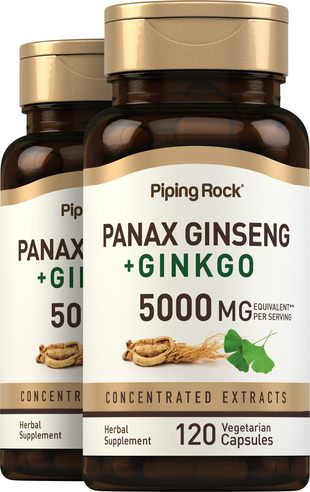 Ginseng and Ginkgo Biloba are traditional herbs that have been used in wellness practices for centuries. Our Korean Ginseng is derived from the root of the Panax ginseng plant and our Ginkgo Biloba is derived from the leaf of the Ginkgo biloba plant. Both have naturally occurring antioxidant properties, which is why many seek them out to add to their daily supplement routines. Each serving of our vegetarian formula delivers 3,000 mg equivalent of Ginkgo Biloba, 2,000 mg equivalent of Korean Ginseng, and 5 mg of Black Pepper Extract to aid with absorption, in convenient capsules.**
