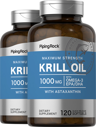 Krill is an exciting nutritional breakthrough because it naturally supplies omega-3 fatty acids and the potent antioxidant astaxanthin. These nutrients are a nutritional force when combined, and an excellent complement to a healthy diet. Piping Rock Maximum Strength supplement delivers 1,000 mg of Krill Oil in each softgel for maximum support at the best value!