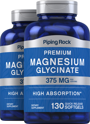Magnesium Glycinate, 375 mg (per serving), 130 Quick Release Softgels, 2 Bottles