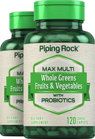 Max Multi Whole Greens/Fruits & Vegetables with Probiotics, 120 Coated Caplets, 2 Bottles