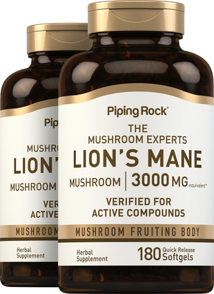 Lion's Mane Mushroom, 3000 mg (per serving), 180 Quick Release Softgels, 2 Bottles