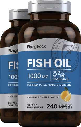 PipingRock Omega 3 Fish Oil unleashes whole-life nutritional benefits. Our purified Omega 3 Fish Oil is sourced from cold-water fish, delivering 1000 mg of superior-quality nutrition in each lemon-flavored softgel and satisfying aftertaste. It’s the perfect addition to a healthy routine!