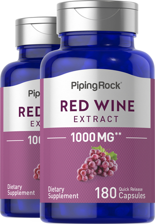 Now you can get all of the benefits of a glass of wine without the alcohol. The wine produced from red grapes is a strong source of polyphenolic compounds, most notably Resveratrol. Our concentrated supplement delivers 1,000 mg of Red Wine Extract in quick-release capsules, making it the perfect addition to any nutrition plan. Get exceptional quality guaranteed at the best value with our 180-capsule supply!