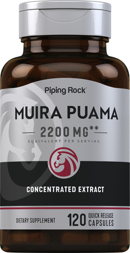 Piping Rock now carries this dynamic herb in an incredible Non-GMO formula. Each serving delivers the equivalent of 2,200 mg of Muira Puama traced from a high-quality, trusted source.