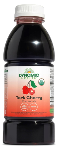Untainted by sweeteners, preservatives, and other additives, Dynamic Health Certified Organic Tart Cherry Juice is nothing more than pure, natural power and nutrition. Extracted from sun-ripened Montmorency and Balaton tart cherries, our 100% juice concentrate contains the antioxidant power of 500* tart cherries in each 16 fl oz bottle along with naturally occurring nutrients.