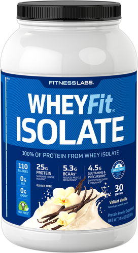 WheyFit® Isolate is made with highly-rated, superior quality whey protein to help you support fitness and strength when working out.** All of our whey comes from premium-grade whey protein isolate — supplying a higher percentage of protein than whey protein concentrate. Unlike slow-release proteins such as casein or beef, whey is a fast-release, muscle-building protein.** Whey has been shown to enhance protein synthesis up to 68%. It works right away to support your muscles!**