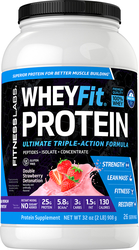 WheyFit Protein was designed to set the standard for premium quality whey, made with a highly-rated, whey protein blend. This fast-acting blend of whey concentrate and isolate along with super-fast-acting whey peptides delivers just what you want — 25 grams of protein, a low 1.5 grams of fat, and 4 grams of carbs in every serving.
